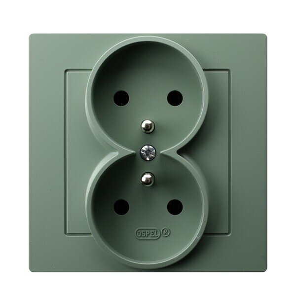 AS Gniazdo podwójne z uziemieniem kompletne z ramką - kolor zielony mat GP-2GZ/84